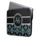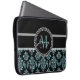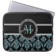 Blue Glitter Printed, Black Damask Personalized Laptop Sleeve