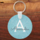 Teal Blue Faux Glitter and Sparkle Elegant Keychain. These Keychains can be customized to include your initial and first name and are a perfect bridal shower, bachelorette party or birthday party favour.