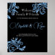 Blue Glitter Vine Swirls Sparkle Wedding Welcome Poster
