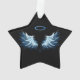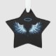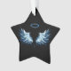 Light, artistique, blue angel wings on a black background. Angel wings.