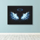Blue Glowing Angel Wings on black background Canvas Print