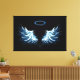 Blue Glowing Angel Wings on black background Canvas Print