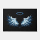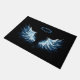 Blue Glowing Angel Wings on black background Doormat