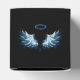 Light, artistic, blue angel wings on a black background. Angel wings.
