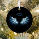 Blue Glowing Angel Wings on black background Metal Ornament