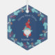 “Gnome sweet gnome.” A cute, fun, whimsical gnome in red and dusty blue along with a Scandinavian designed dusty blue, red and orange floral wreath on a navy blue background, will delightfully help decorate your Christmas tree. Feel the warmth and joy of the holiday season whenever you use hang up this fun, simple, modern, custom Christmas glass ornament. Choose from various shapes. Matching cards, stickers, wrapping paper, home décor, and more are also available. A great gift for someone special, even yourself!