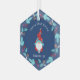 Blue Gnome Sweet Gnome Elf Floral Wreath Whimsical Glass Ornament