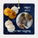 Blue, Golad & White Grandmas First Christmas Ceramic Ornament