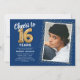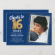 Blue Gold 16th Birthday Photo Invitation