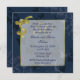 Elegant custom wedding anniversary party invitation, done in tones of blue and gold tone. Graphics of a dark blue background, with pretty floral flourishes and butterflies and a semi transparent white and gold tone text area, in the middle. Realistic looking graphics of a gold tone rivet with a golden yellow bow decorates the left top of the text area. Text in blue is fully customizable and ready to personalize for your wedding event. Lovely invitation for weddings, anniversaries, birthday parties and more.