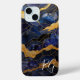Blue Gold Abstract Marble Monogram Initials Case-Mate iPhone Case