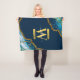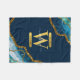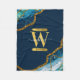 Blue & Gold Agate Geode Glitter Monogram Fleece Blanket