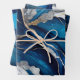 Blue Gold Agate Marble Glitter Abstract Design Wrapping Paper Sheet