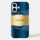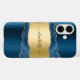 Blue and faux gold agate, marble stone print as background Personalize and add your name. The name is written with a modern hand lettered style script.