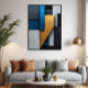 Abstract vertical composition with overlapping geometric panels. Deep blue tones, aged gold, and concrete gray with cracked texture. Modern and sophisticated design ideal for interior decor. Bring industrial elegance and visual depth to your wall with this exclusive art piece.