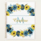 Here's an elegant notebook planner that is personalized just for her. Her monogram and name in blue and gold is at the centre of the front cover, while the watercolor floral wreath peeks out from behind. The back has a repeat of the floral wreath, but with your custom text at the centre. Everything is placed on a crisp white background.