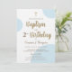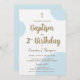 Blue Gold Boy Baptism 2nd Birthday Invitation