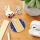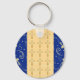 This wedding keychain favour is decorated with tiled gold Christian crosses and blue and gold damask bars on a gold damask background.