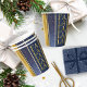 If you are wondering what colour combinations to pick for your Christmas decor and gift wrap supplies this year, I've created collections of coordinating patterns to make life just a bit easier. This paper cup features a modern, vertical stripe design, with a glitter and grunge effect, shown here in a deep blue and gold colour palette. Vertical 'Fa La La La La' in green adds a fun accent. Search ID1009 to see other products and patterns in this colour scheme.
