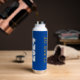 This classic blue custom senior graduate water bottle features bold gold and white typography reading class of 2024 in varsity letters for a high school or college graduation party keepsake gift. Customize with your name in elegant cursive cript underneath for a great commemorative favour.
