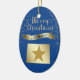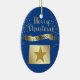 Give them something pretty from the beautiful state of Colorado! On the front of this ornament is a shiny gold silhouette image of the state, with a darker gold star imposed over it. Above the state and star image is the glittery message MERRY CHRISTMAS in script, and a banner with the text in blue COLORADO. Around it all are gold snowflakes. The images and text are placed on a deep blue background. The back of the ornament has text fields in light gold for you to customize, and a second gold star image. You may change the background colour, if you'd like, by choosing CUSTOMIZE.