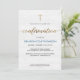 Picture an invitation that seamlessly marries customization with timeless design, creating a treasured keepsake for a meaningful celebration. The gold cross gracing the invitation embodies a sense of sacredness and reverence, a symbol of faith that resonates deeply with the occasion.