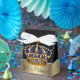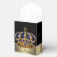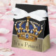 Elegant royal blue and gold prince crown baby shower favour boxes. These beautiful blue and gold prince baby shower favour boxes can be personalized with text and you can change the ribbon colour.