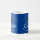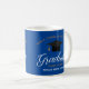 This cool royal blue custom senior graduation mug features chic white and gold typography under a high school or college name for the class of 2026. Customize with your graduating year under the lovely calligraphy for a great personalized graduate gift.