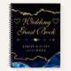 Blue Gold Faux Glitter Agate Wedding Guest Book