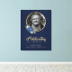 Elegant personalized blue and gold floral photo funeral welcome sign featuring a gold photo frame adorned with blue roses.