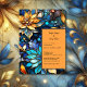 Set the tone for your special day with this stunning and sophisticated blue and gold floral wedding invitation, featuring intricate stained glass-inspired details. Perfect for elegant autumn weddings, this artistic creation combines vibrant fall tones of blue, gold, and orange to exude timeless charm and romantic elegance. Whether you're planning a chic celebration or a luxurious affair, this wedding invitation reflects your unique style and love story. Add a touch of golden artistry to your wedding theme and impress your guests with its intricate details.