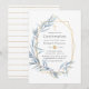 Blue & Gold Geometric Eucalyptus Leaf Confirmation Invitation