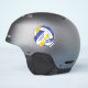 This blue, gold and white volleyball sticker with custom team and school mascot name features a floral kaleidoscopic pattern blended with the blue and gold volleyball panels and an artsy abstract swirl pattern blended with the white panels - her name and team name are customizable, as is her jersey number on a tiny white volleyball - by katz_d_zynes