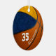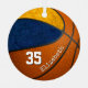 This team spirit basketball ceramic ornament styled for girls features a basketball graphic with easily customizable player name and jersey number on the front and holiday year on the back - the basketball has two coloured panels, one blue and one gold, blended with a digitally created texture for an artsy appearance - by katz_d_zynes | see more basketball ornament colour combinations by searching "basketball ornaments" in my shop | see more girls’ basketball gifts in my "Basketball team colours gifts for girls" collection >>> https://www.zazzle.com/collections/119901188031358626