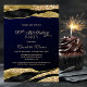 Invite your friends and loved ones to your 90th birthday party with this modern navy blue and gold birthday party invitation.