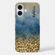 Blue Gold Glitter Leopard Print Monogram Name Case-Mate iPhone Case