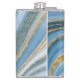 Blue Gold Glitter Marble Elegant Abstract Hip Flask