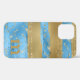 Girly fun modern in brush strokes with blue, gold, glitter, black and adorned with your script monogram initial on an iPhone 12.