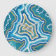 Blue, sea green and gold graphic gemstone agate abstract watercolor painting.