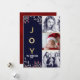 Blue & Gold JOY 3 Three Photo Holiday Christmas Card