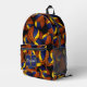 This cool basketball backpack features a random pattern of varied size basketballs turned every which way on a black background - each of the basketballs in the pattern has two recolored panels--one blue and one gold - customize with the athlete's name & jersey number - by katz_d_zynes