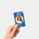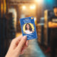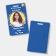 Blue Gold Leaf Plastic Badge - Vertical to identify all the members of your production team. You can personalize it with a photo, a logo, and text. The badge measures 2.13 inches x 3.38 inches and is made of PVC Plastic which makes this ID Badge durable, and it won't fade or tear.