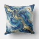 Blue Gold Marble Luxury Decor Fluid Art Pattern Throw Pillow