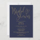 Blue Gold Modern Elegant Script Bridal Shower Invitation