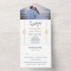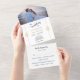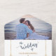 This is an elegant and modern all season wedding invitation that lets your own couple's photograph take centre stage. The inside flap showcases your photo, while at the centre, your important wedding information in blue and gold text combines with gold line embellishment at the right and left. The tear away RSVP card and reception menu choice options are at the bottom, also in blue and gold. If you don't need a text field, just blank it out. We are always happy to help, so feel free to message us if you need assistance. If you're having a buffet reception, we can work with you to re-design the RSVP portion, so don't hesitate to ask!