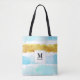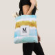 Blue & Gold Monogram Striped Watercolors Tote Bag