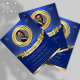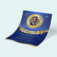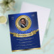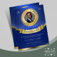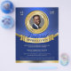 Pastoral appreciation recognition flyer features blue and gold colour tone palette, a customizable gold medal frame image insert, and gold banner as placement for added text. A formal and professional flyer to promote your church and announce your Pastor's appreciation service.