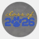 Blue & Gold Pawprint Light Chalkboard Graduation Classic Round Sticker