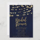 Blue Gold Rustic Wood & Lights Bridal Shower Invitation