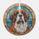 Blue Gold Saint Bernard Dog Stained Glass Ornament